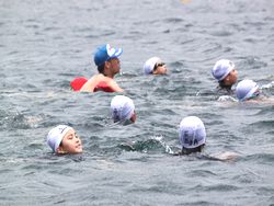 プールでは25mテスト、海では100m・300mテストが実施されました。