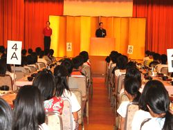 朝礼は、シアタールームで行われました。