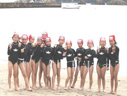 1kmテストでは、隊列を組んでお互いのバディと励ましあいながら、泳ぎました。