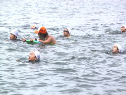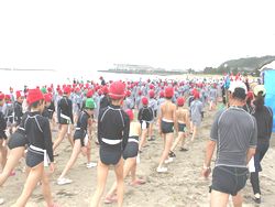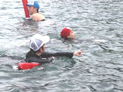 海での水泳練習は、今日が初めてです。