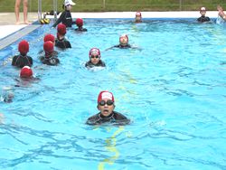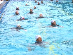 海のコンディションが悪いので、海での水泳練習は中止になり、プールでのみの練習になりました。