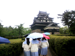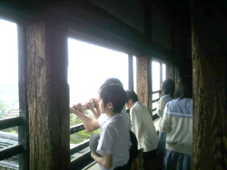 松江城からは宍道湖を見渡すことができ、児童たちは城からの景色と歴史を感じました。
