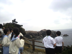 日御碕では、奇岩や絶壁など大迫力の景観、自然美の美しさに児童たちは感動していました。日御碕の絶景は「日本の自然百選」にも選定されています。