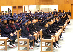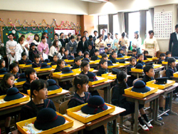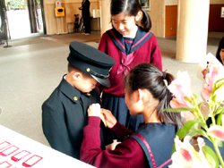 1年生は、6年生のお兄さん・お姉さんに新しい名札をつけてもらい、元気よく式に参加しました。