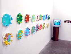 児童たちの力溢れる色彩豊かな作品が、ギャラリーの部屋いっぱい展示されました。