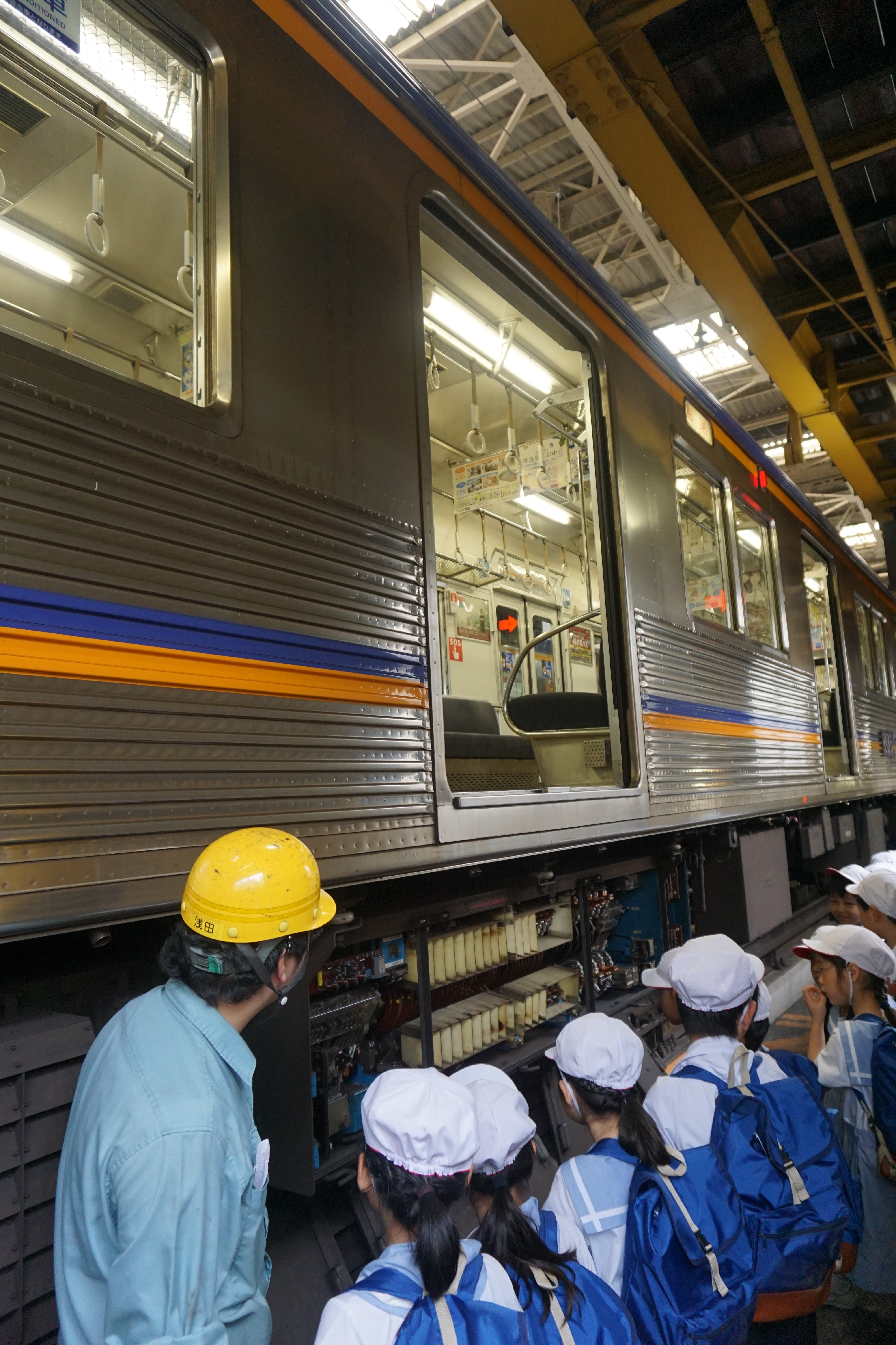 そして、検車区では、電車の動く仕組みを教えて頂きました。