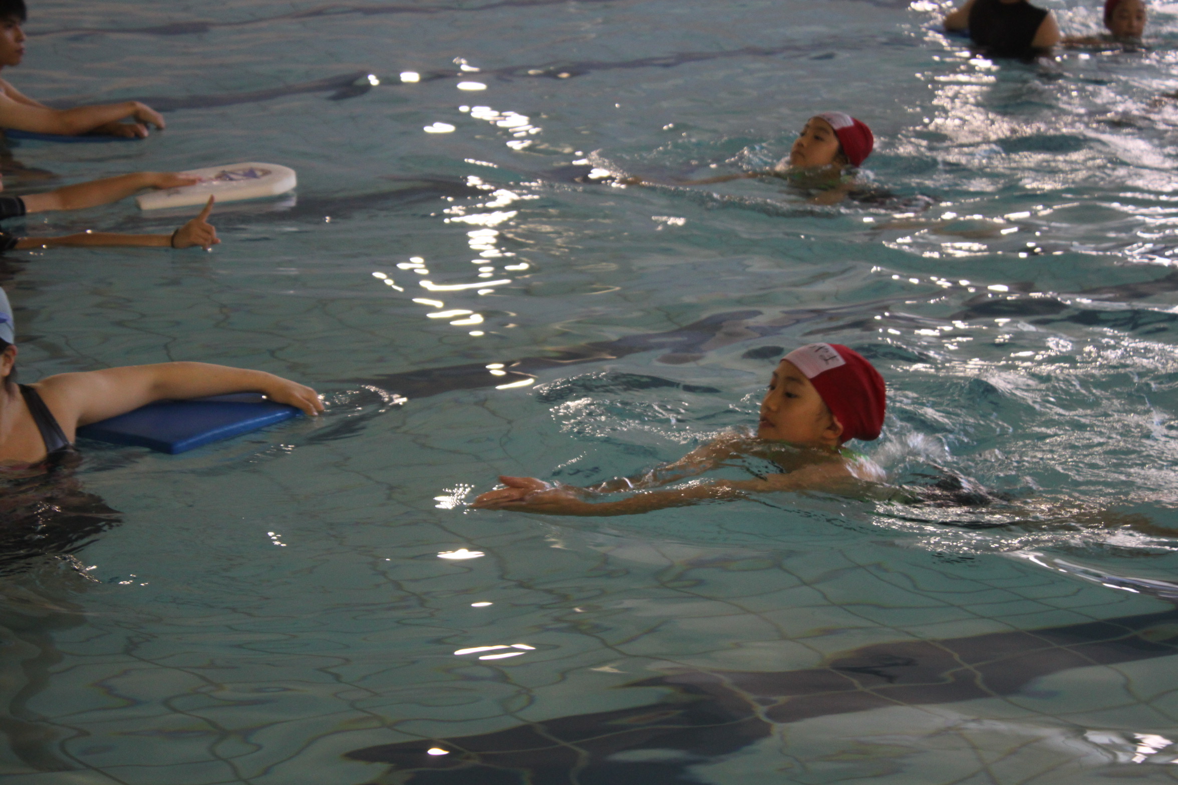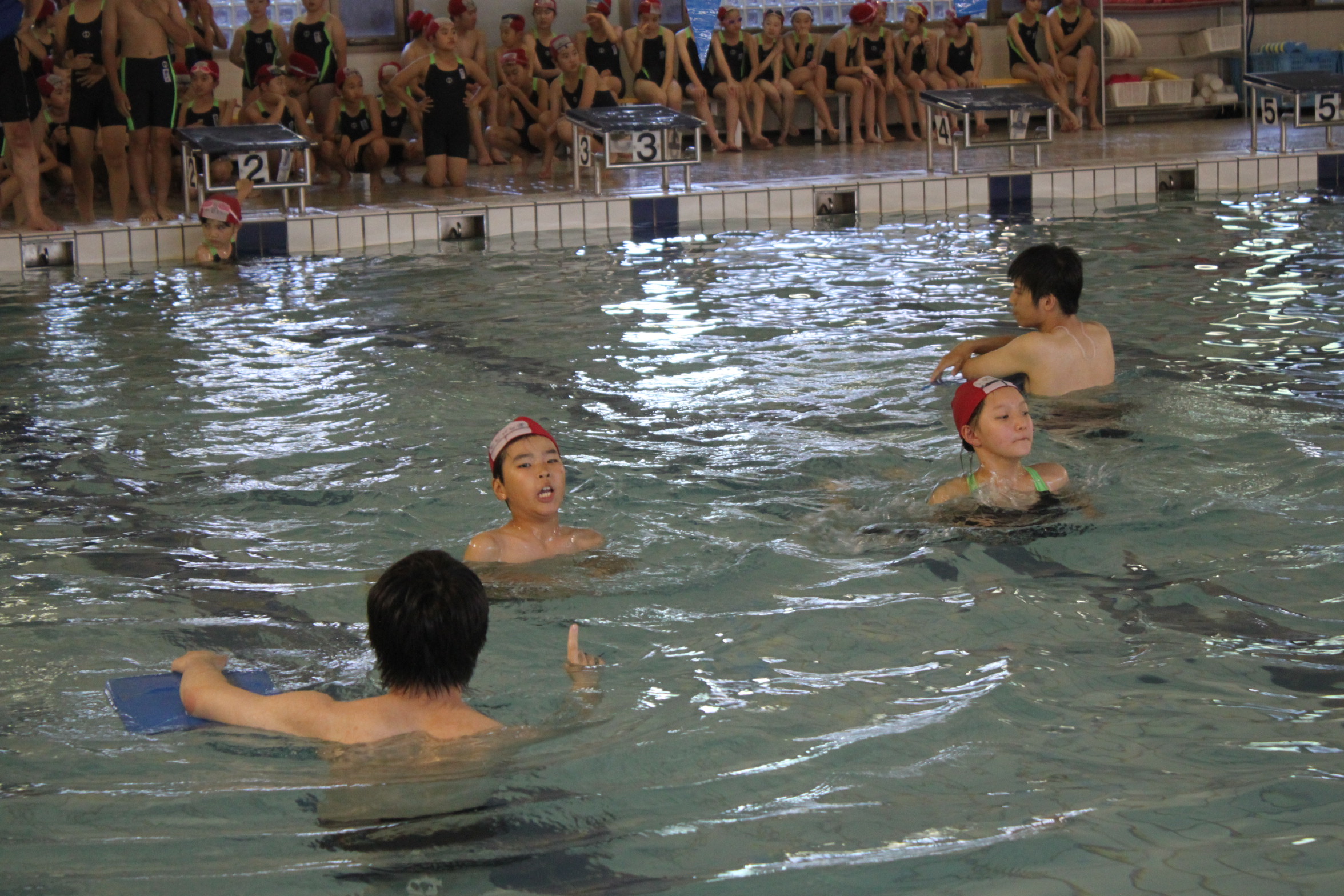 学院では、臨海学舎に向けて事前に水泳練習班を決定するためにテストを行っています。