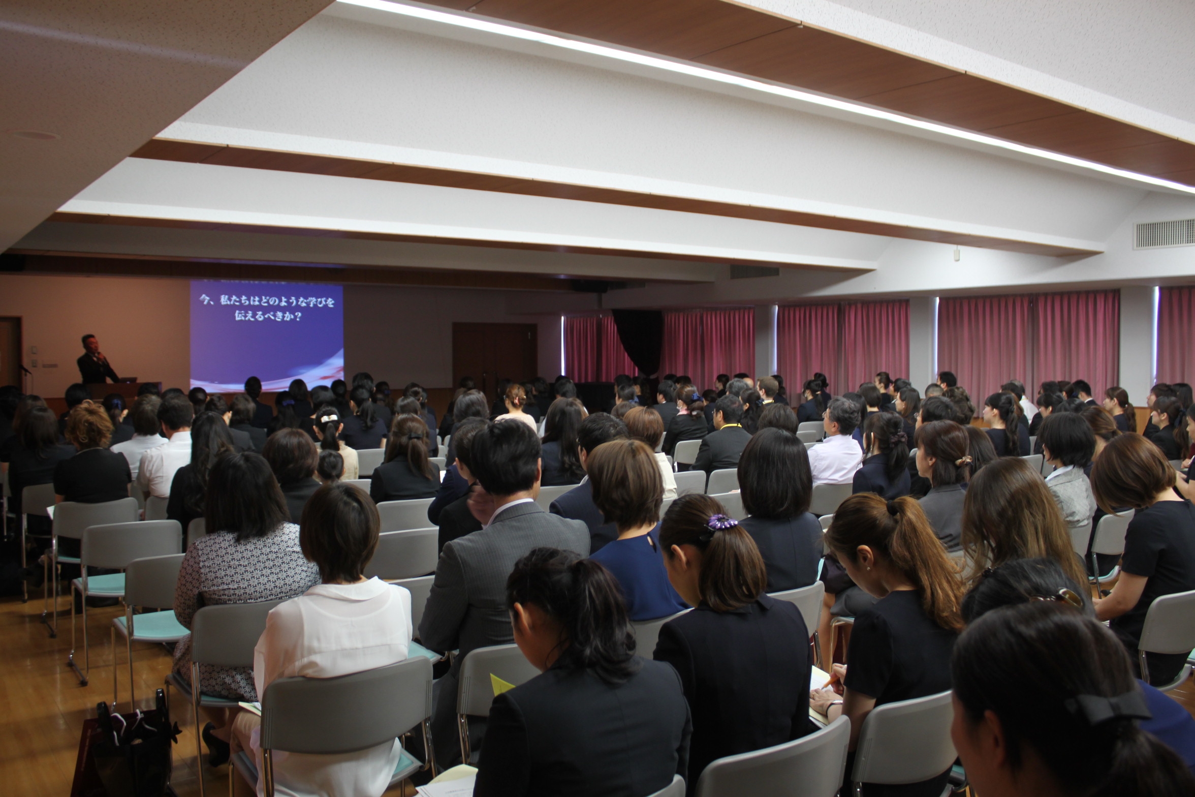 多目的ホールでは、学校や入試についての説明があり、保護者の方々は熱心に聞いておられました。