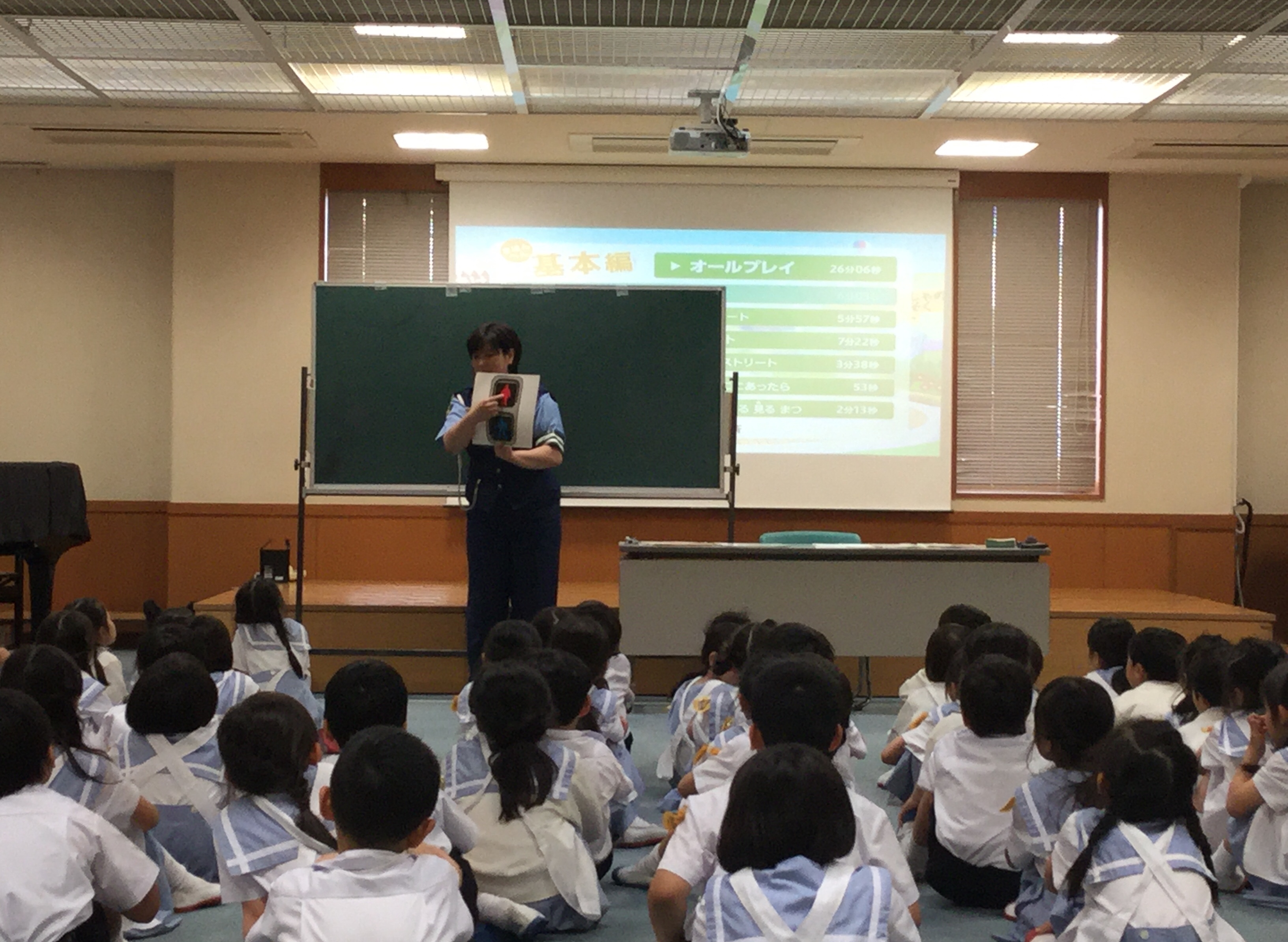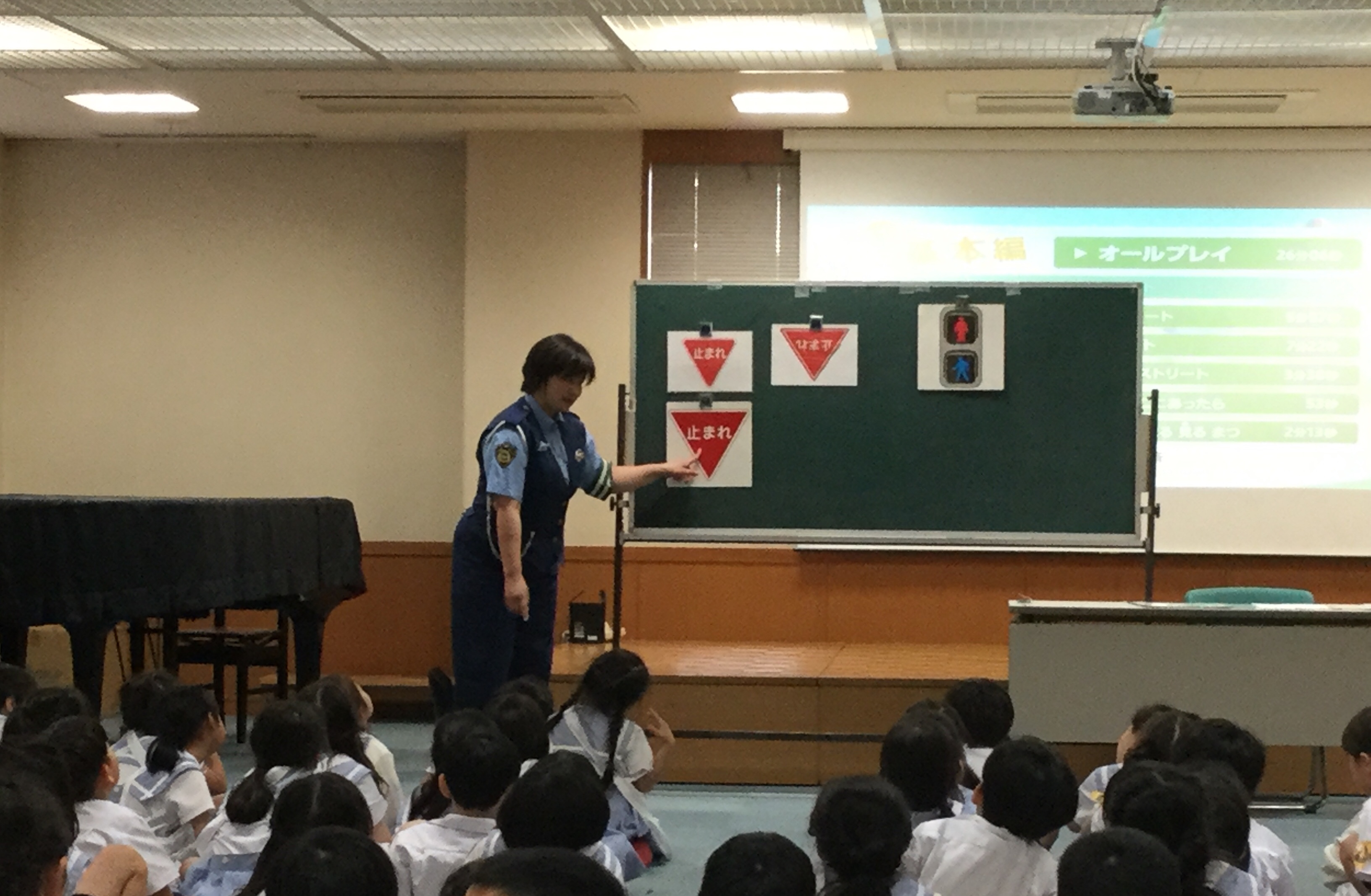 6時間目に、住吉警察署の婦警さんから交通安全についてお話を聞きました。