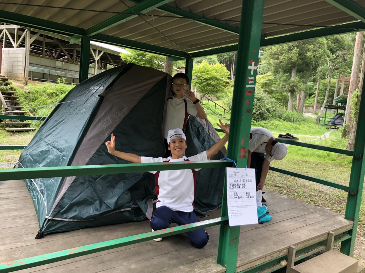 お弁当を食べ、開所式の後、テントを設営しました。これからそれぞれの活動に出かけます。