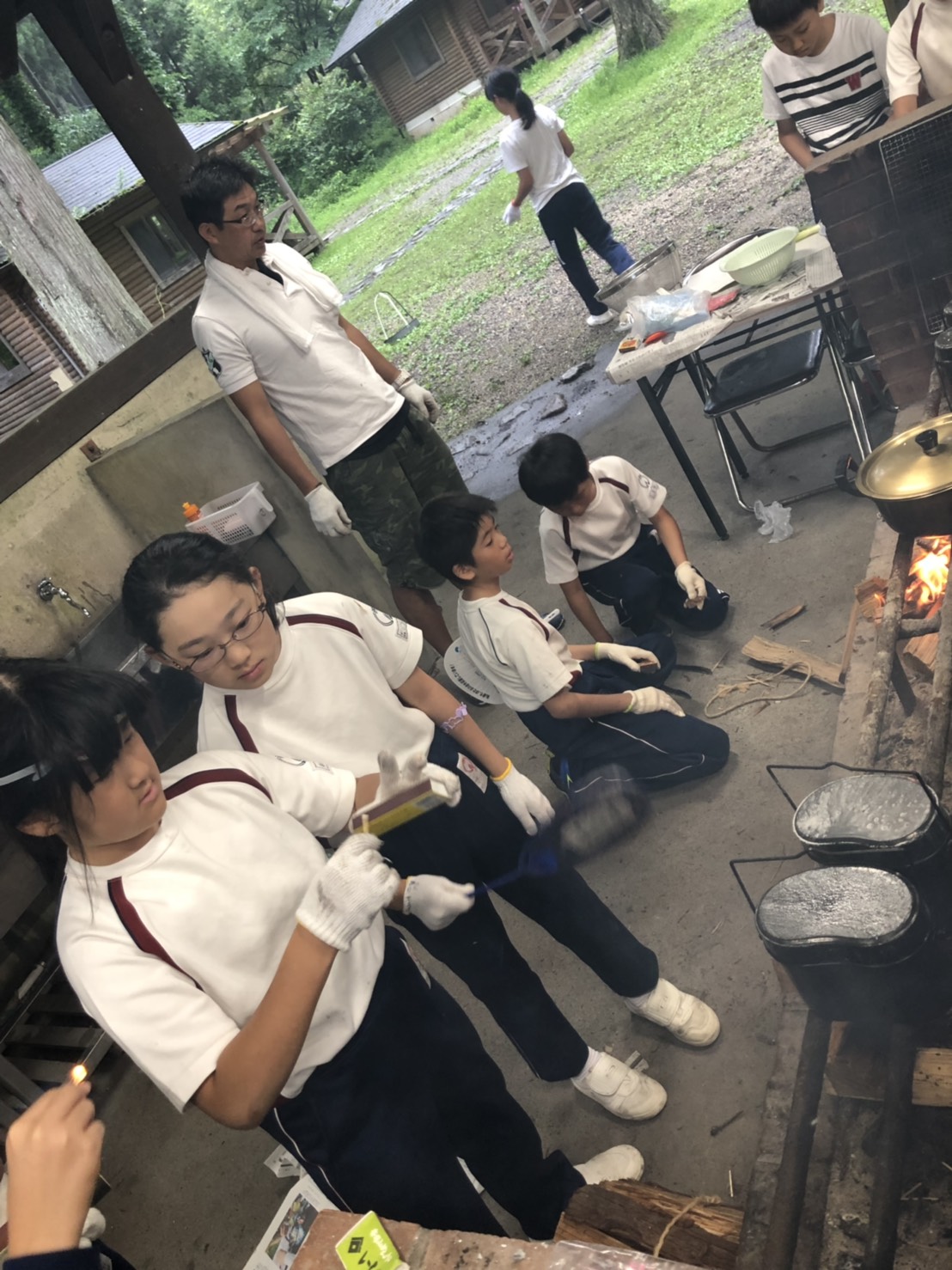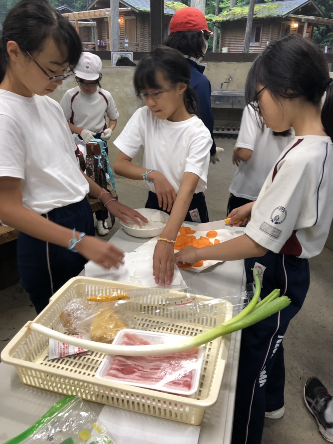 各班役割分担して、材料を切ったり、火を起こしたりと、自分たちで考えながら夕飯作りを頑張っています。