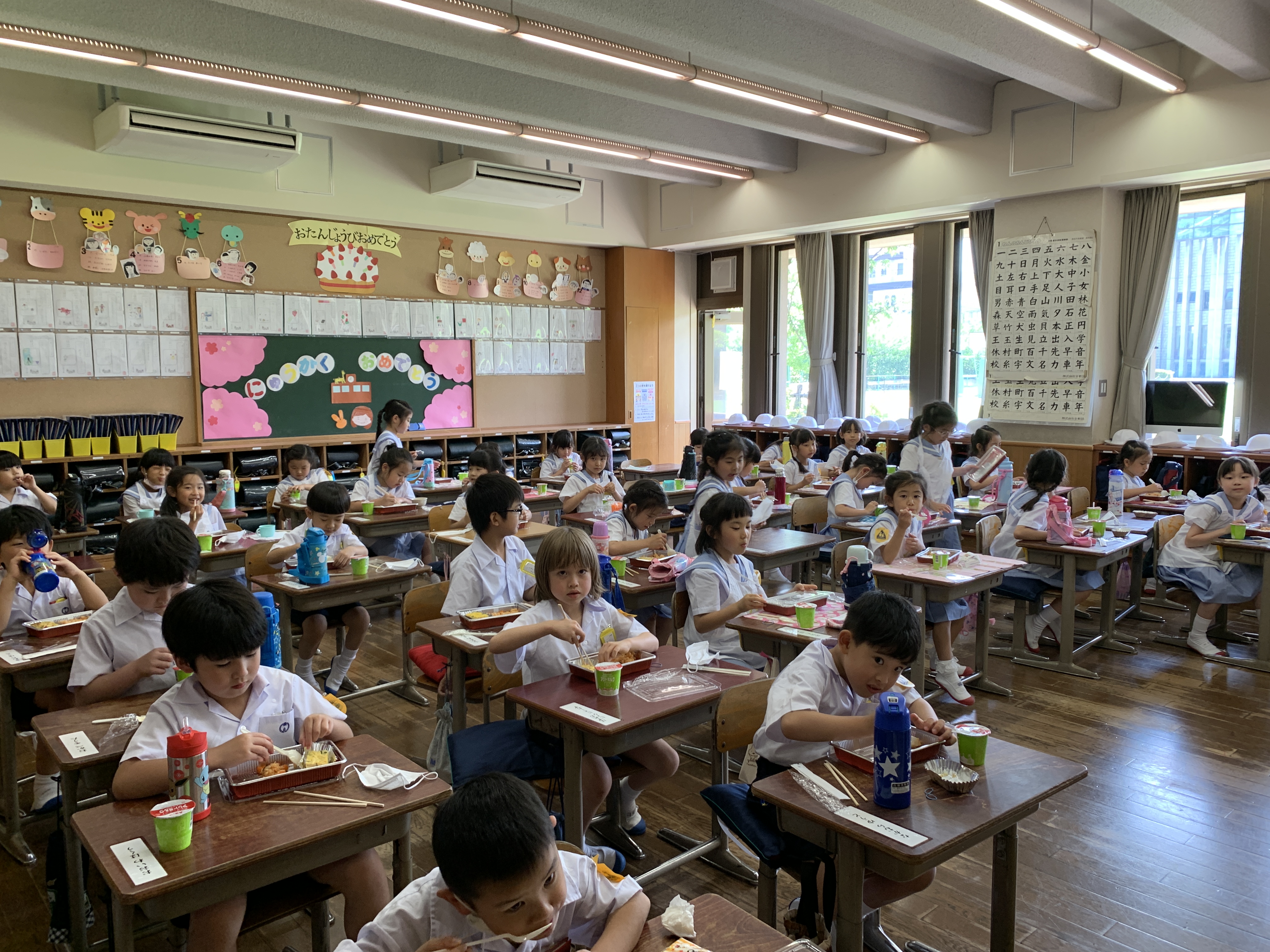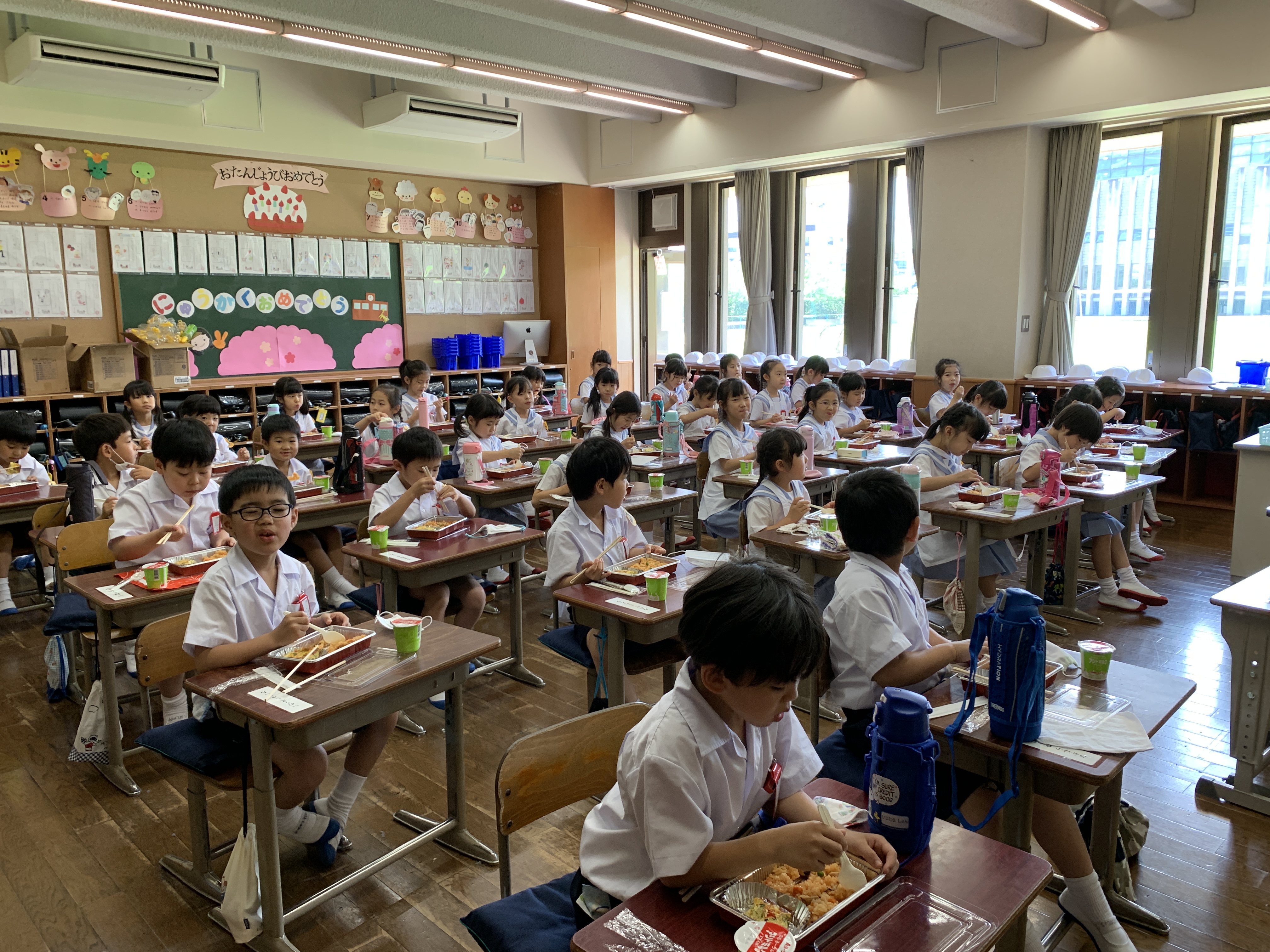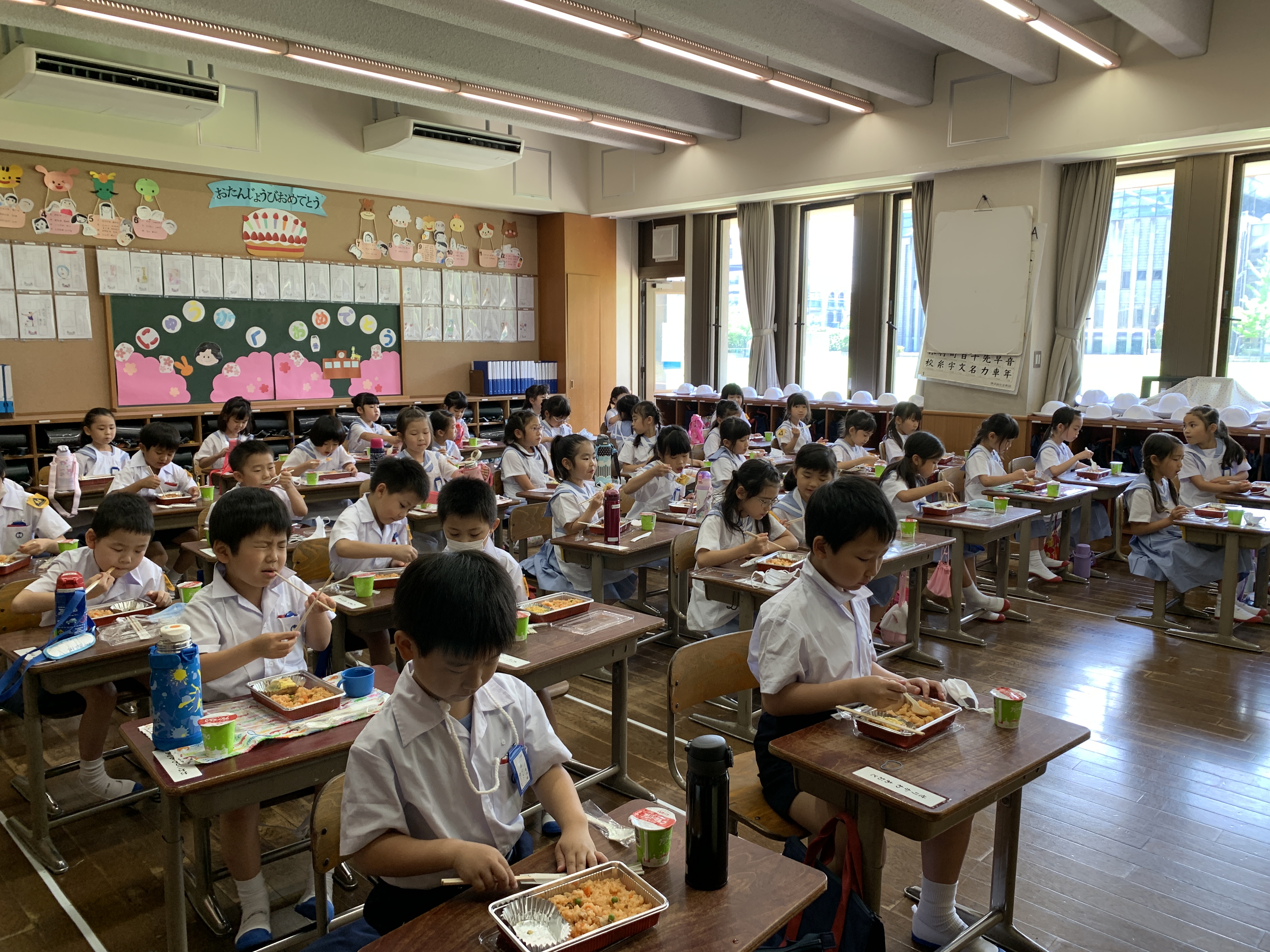 また、1年生は今週から初めての給食です。配膳方法やメニューの変更もありましたが、しっかり落ち着いた給食の時間になっているようです。