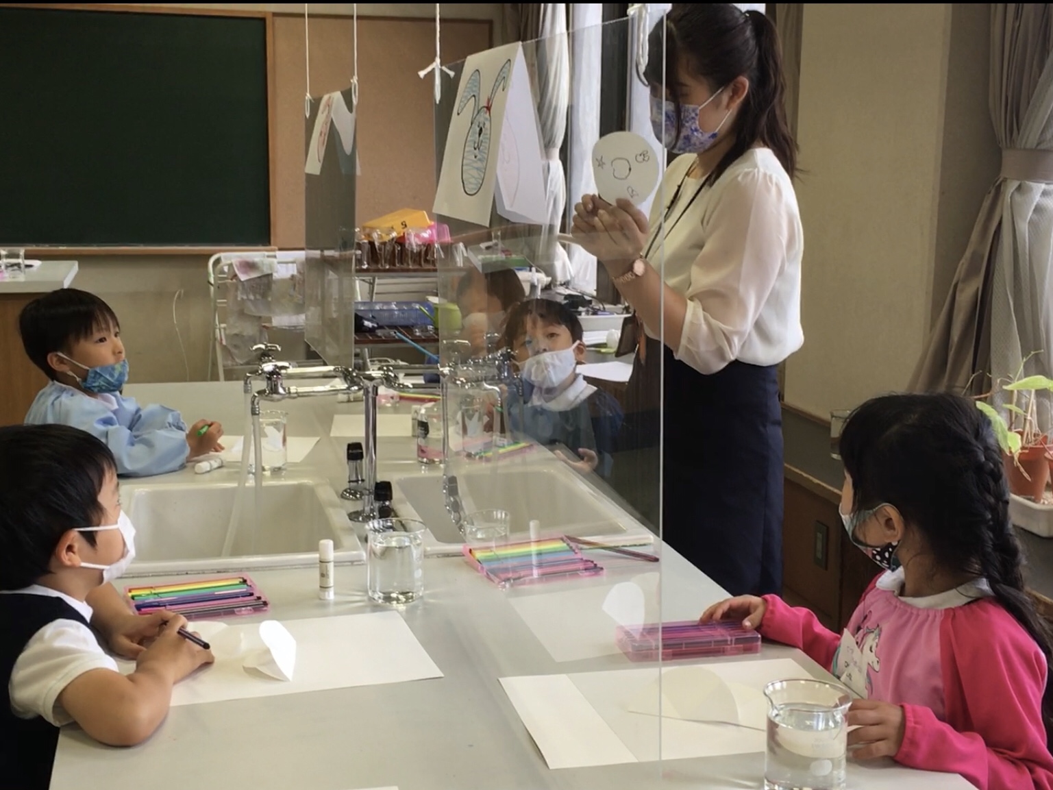 体験授業では、忍者修行やプログラミング、せっけんづくりなどの授業が行われ、それぞれの教室で興味深く、楽しみながら活動する園児たちの姿を見ることができました。