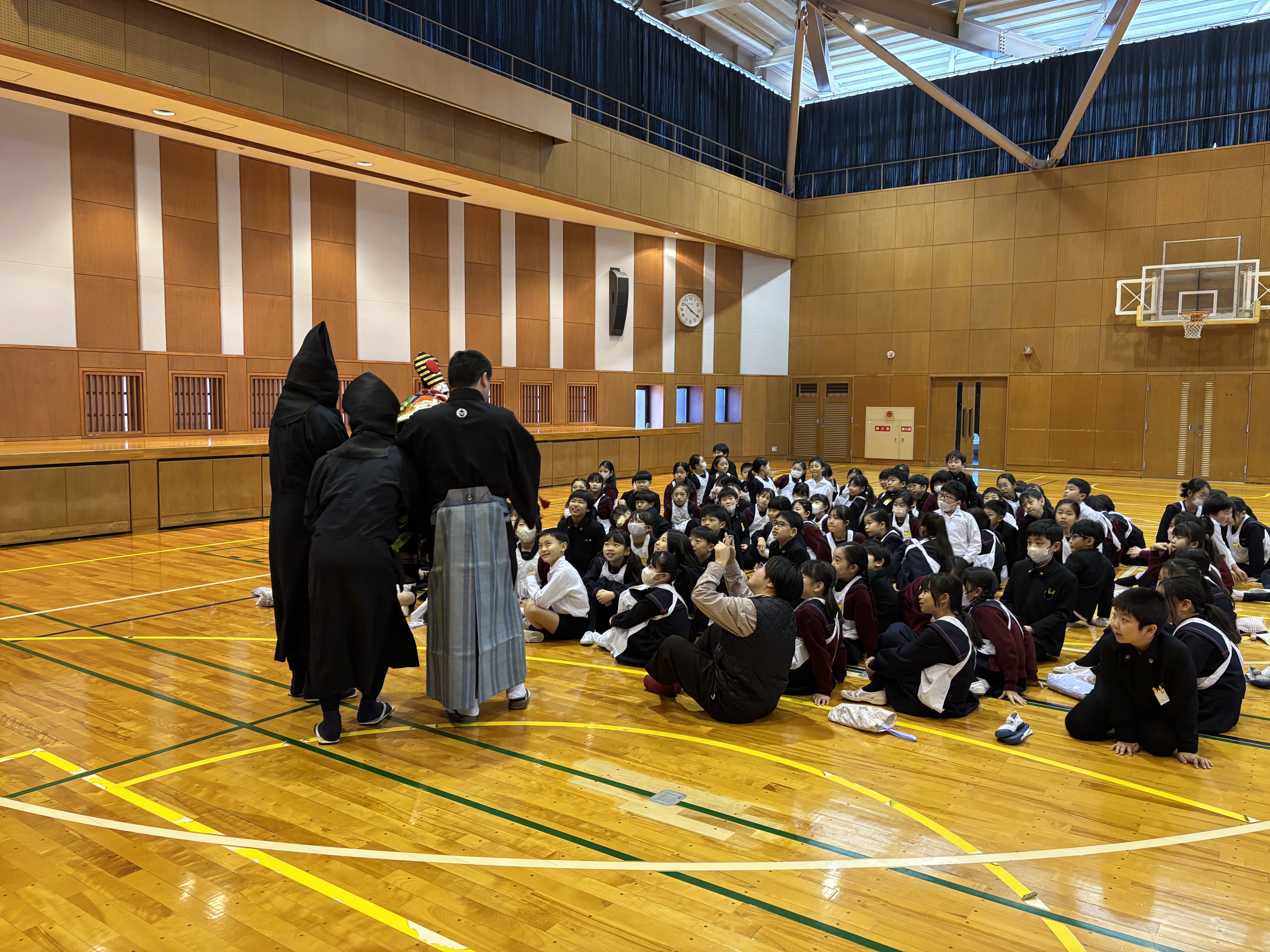 本日、3年生は「文楽」の出前授業を体験しました。 「文楽」そのものが初めての経験になった児童が多く、とても興味深く話を聞いていました。 ひとつの人形を3人がかりで息を揃えて動かす様子には、みんな驚き感動していました。 本物体験として、貴重な経験をさせていただき、ありがとうございました。