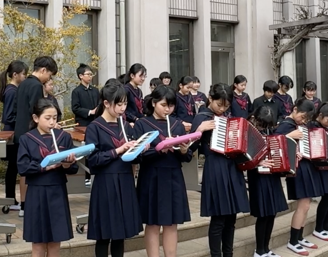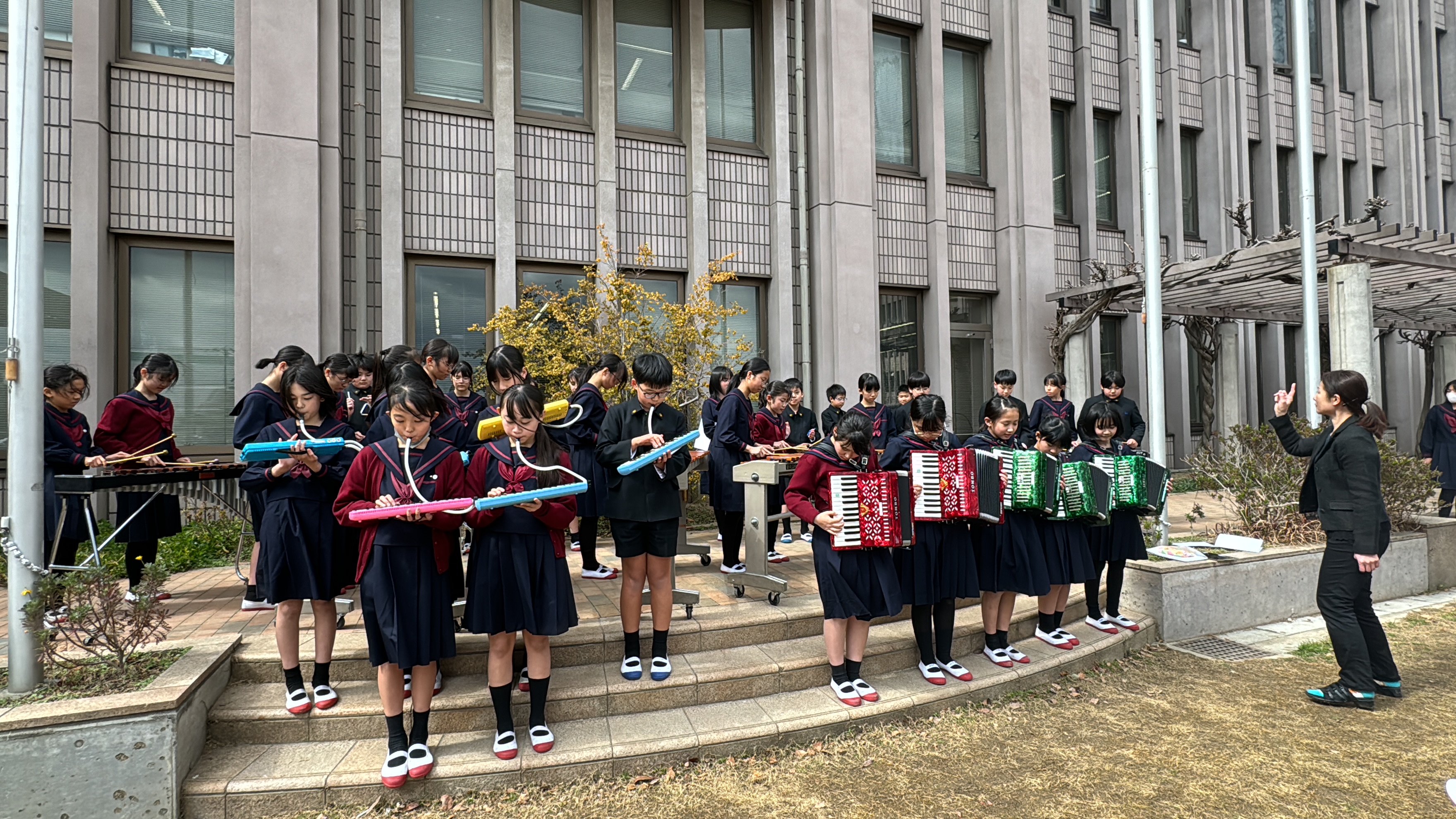 5年生が器楽合奏のコンサートを開催し、3学期にクラスの音楽の授業で取り組んだ曲を披露しました。他の学年の児童に聴いてもらえる機会は励みになりました。