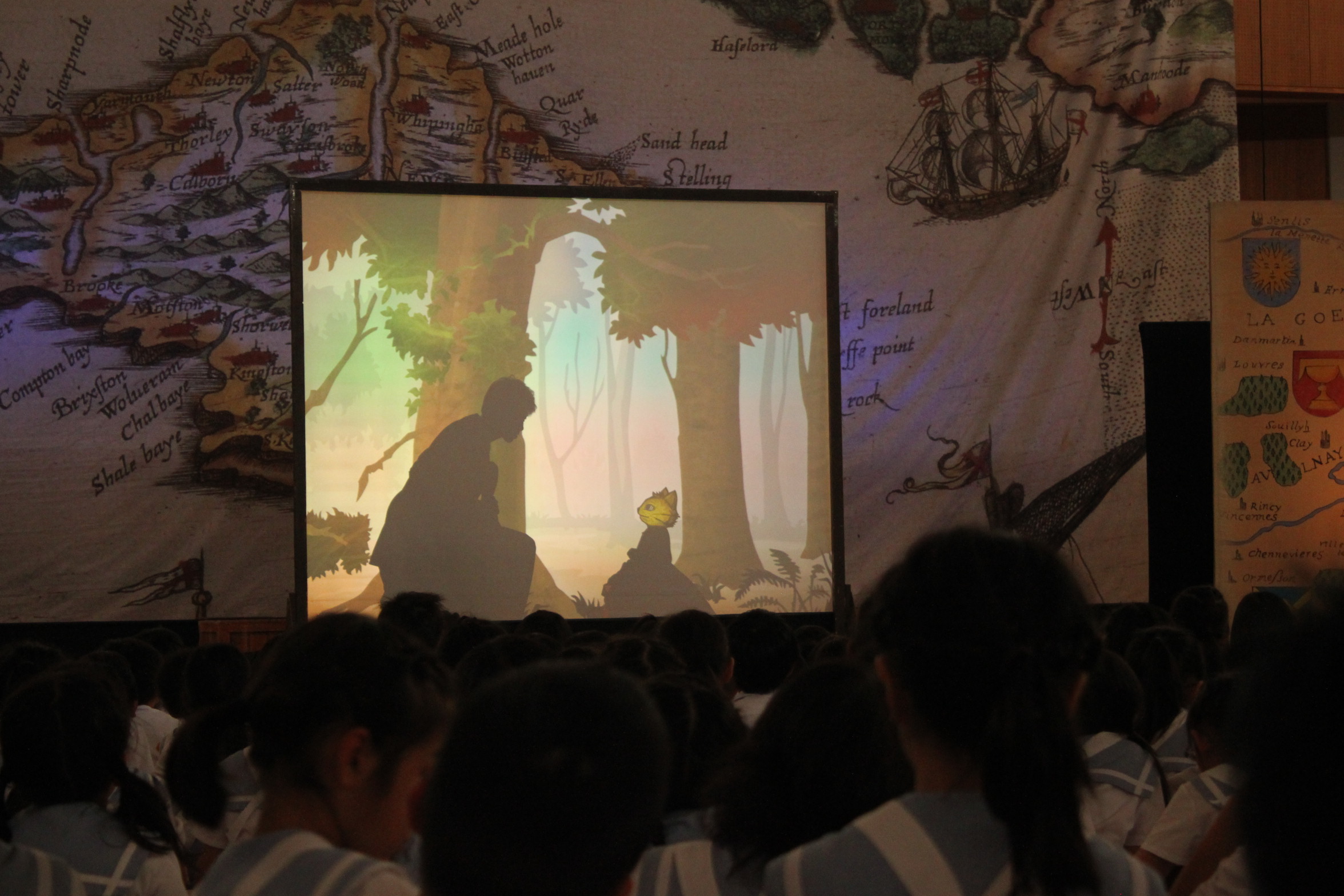 今年は、劇団かかし座の方々にお越しいただき、影絵劇を鑑賞しました。