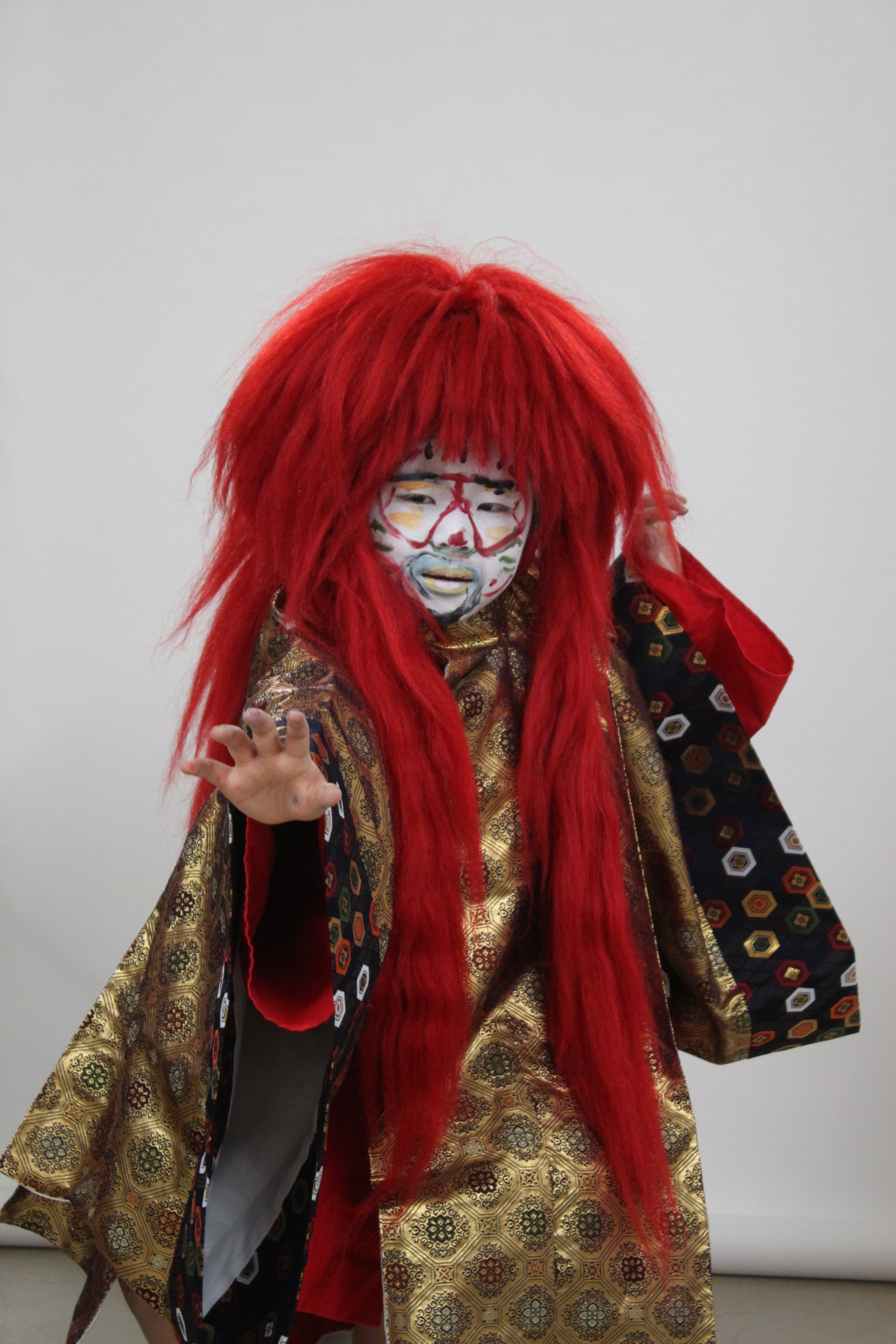 自分の顔を真っ白にお化粧をして、楽しそうに書いていました。
