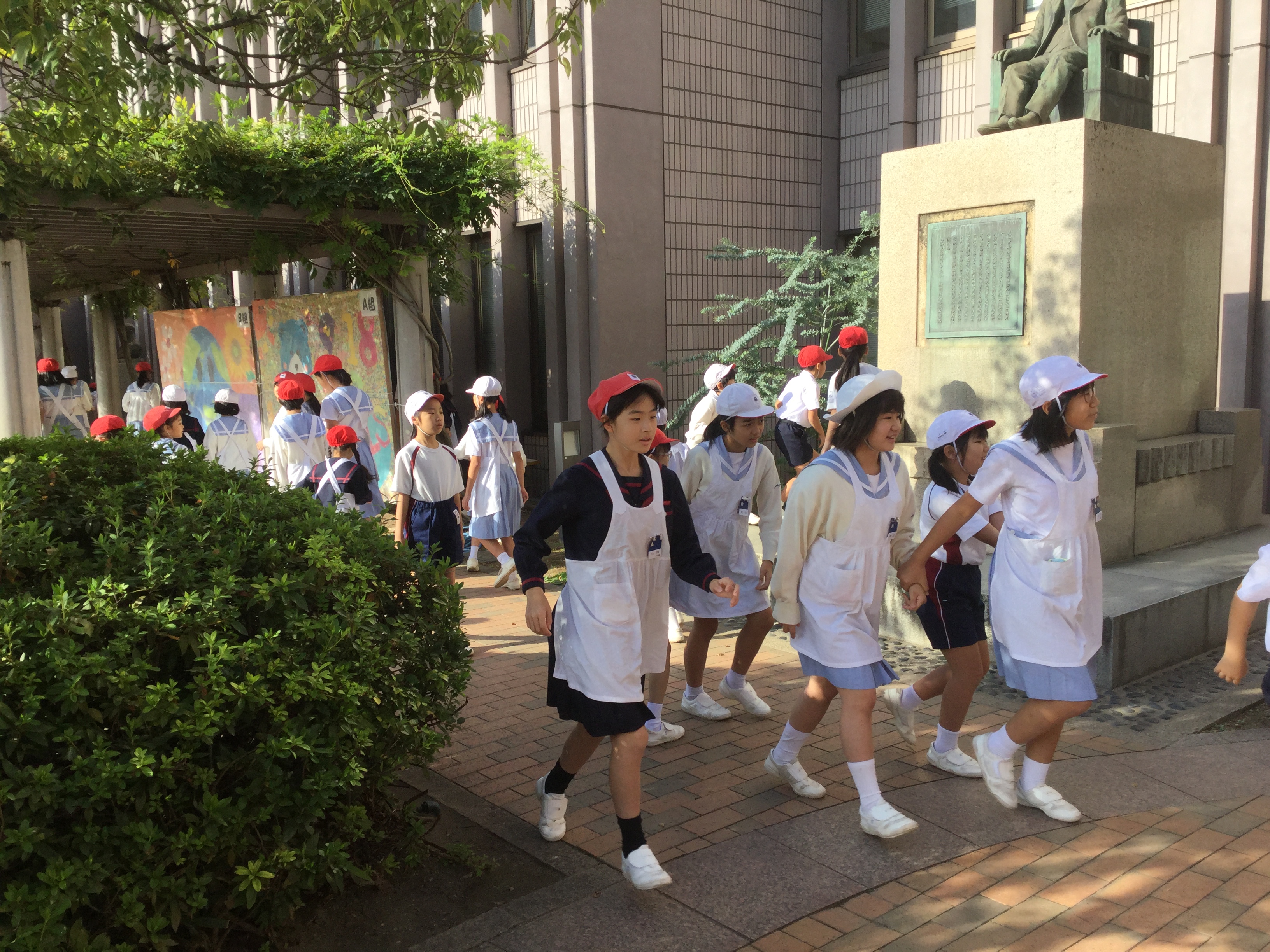 初めての体験に児童たちはドキドキしながらも勇気をだし、利用客の方に笑顔で声をかけていました。