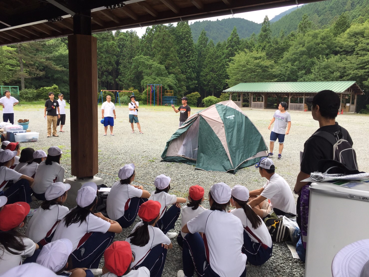 本日より、5.6年生はキャンプに出発しました。 無事に洞川キャンプ場に着き、 青空ときれいな緑の中でお昼ご飯を美味しく頂きました。 開所式が行われ、2泊3日の自然の中での生活を楽しみます。 6年生と5年生の半分は、自分達の力でテントを張り、半分の5年生はバンガローに宿泊します。