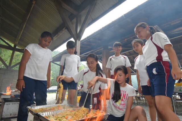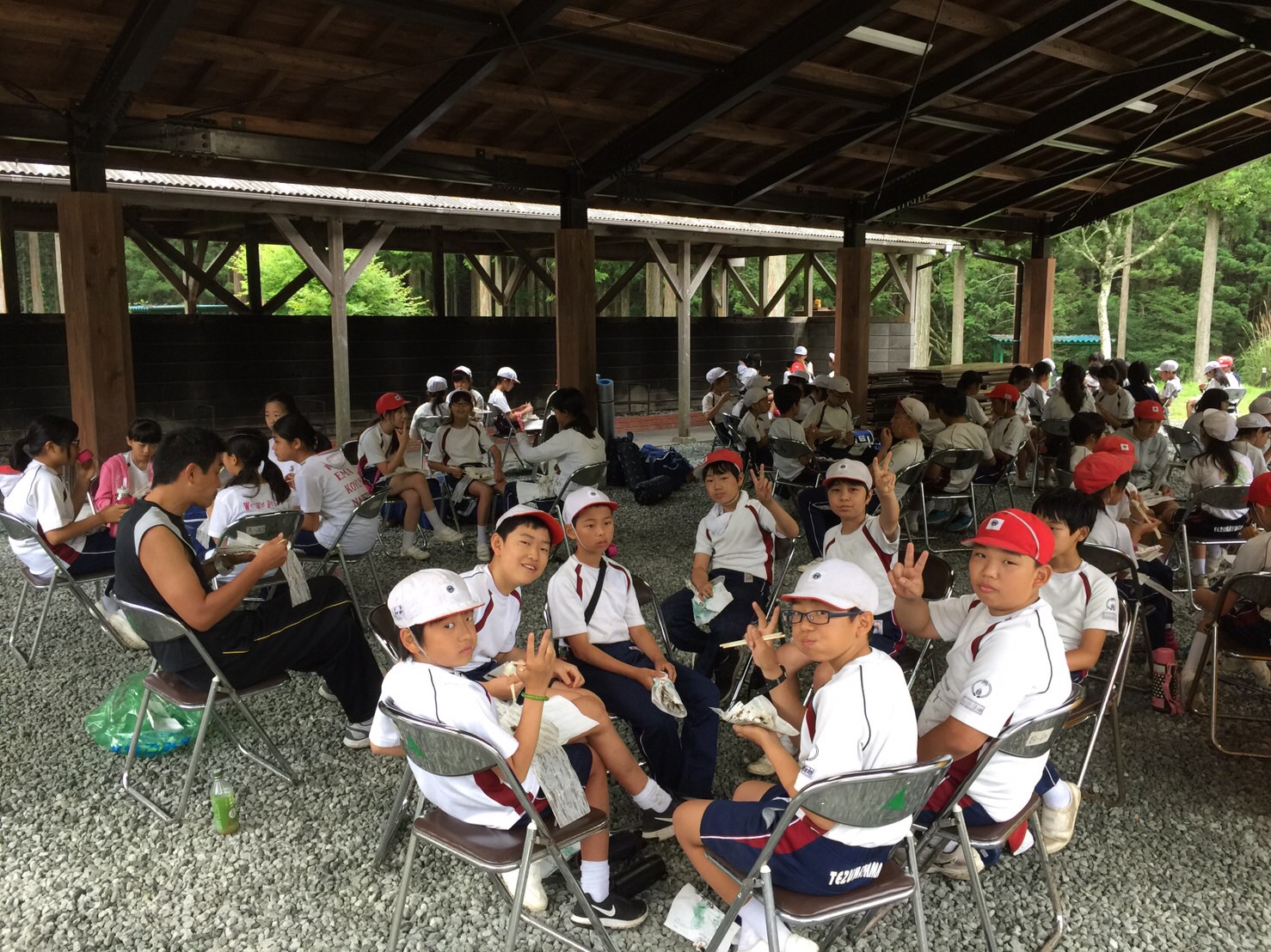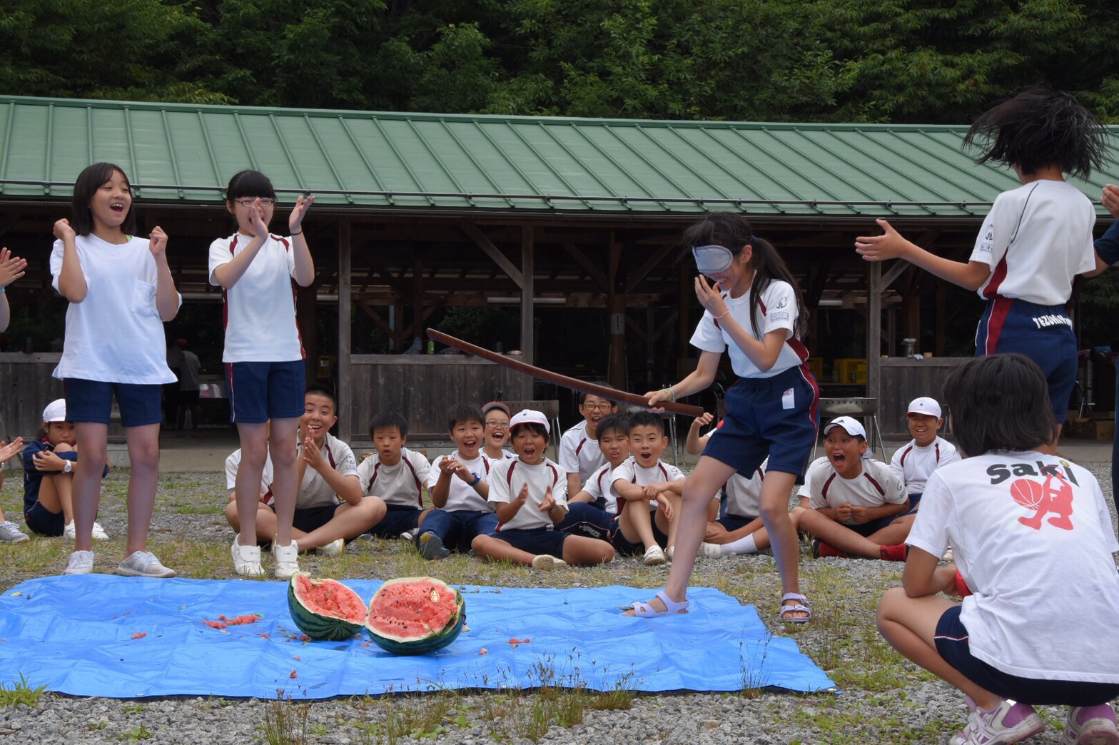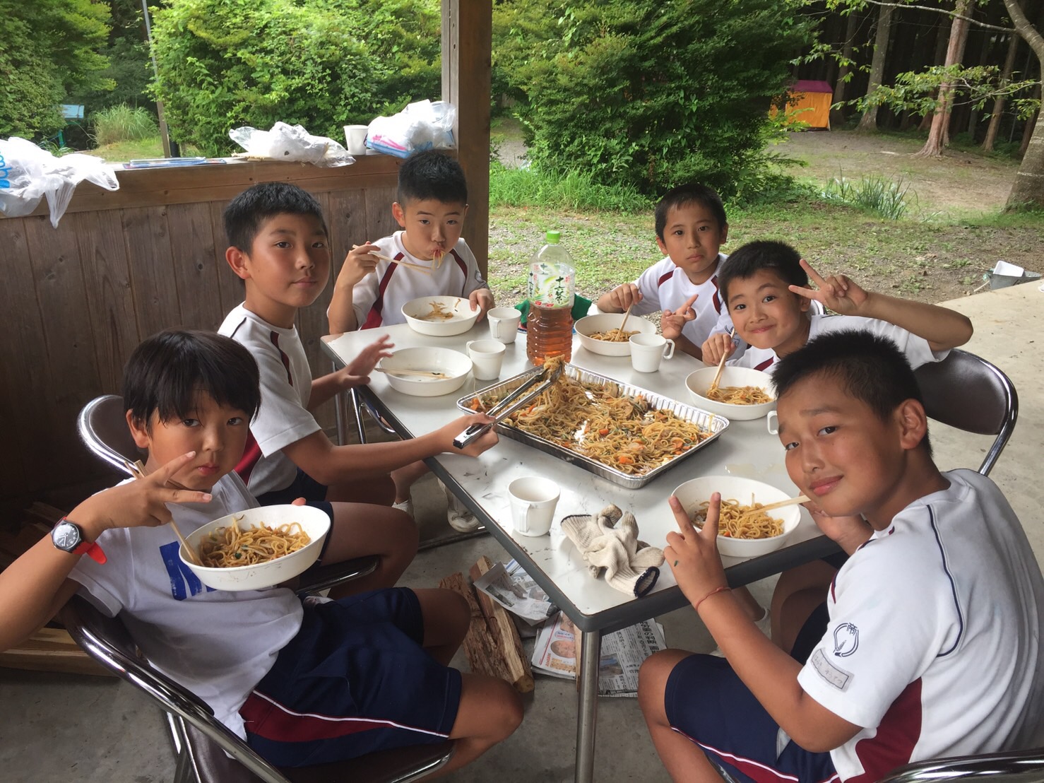 キャンプ2日目です。 児童たちは、自分達で朝食、夕食を作ります。 火おこしから始め、少しづつ食事作りにも慣れてきました。 朝食は豚汁を作り、夕食は焼きそばを作りました。 みんなで作った食事は、美味しかったです。 キャンプを通して、自然の中での火の大切さを学びました。 今日は、グループに別れてアクティヴィティーを行いました。 燻製を作ったり、川遊びやスイカ割り、流しそうめんなど各グループ楽しく活動しました。