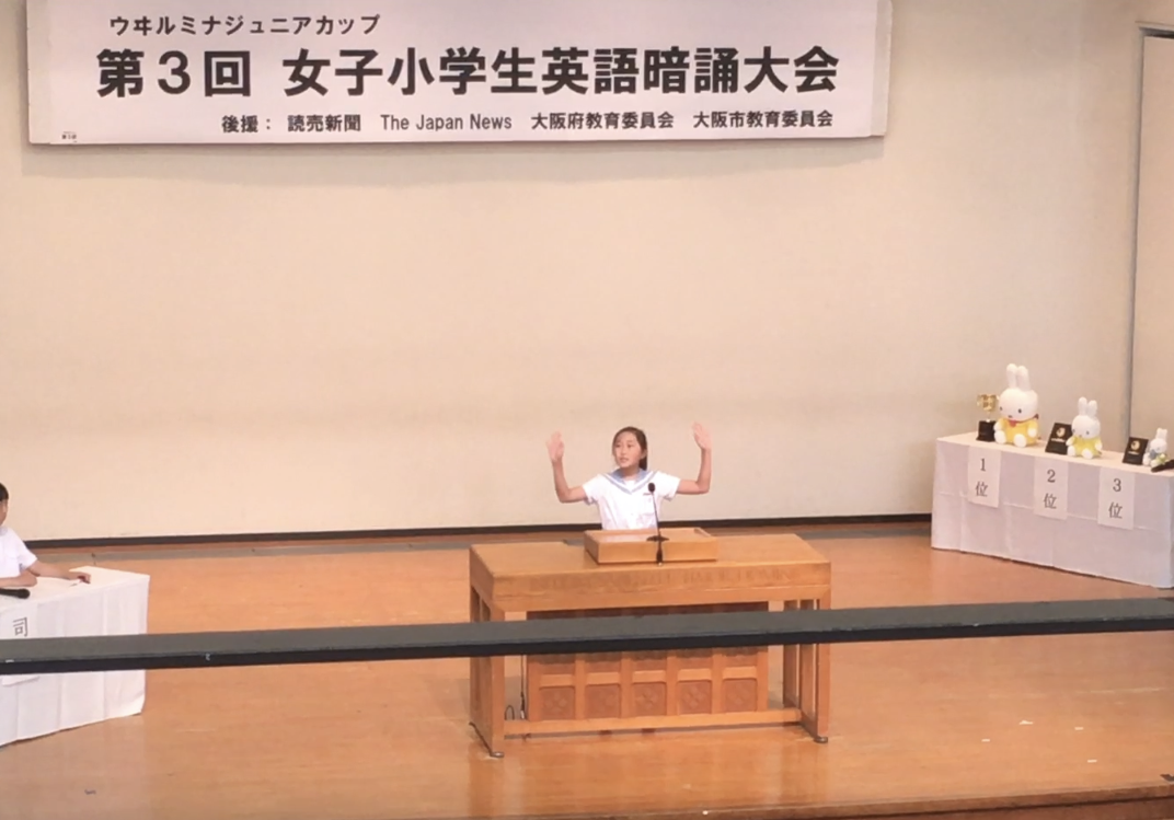 8月24日、第3回ウヰルミナジュニアカップ女子小学生英語暗唱大会に、5年生と6年生の代表児童2名が出場しました。