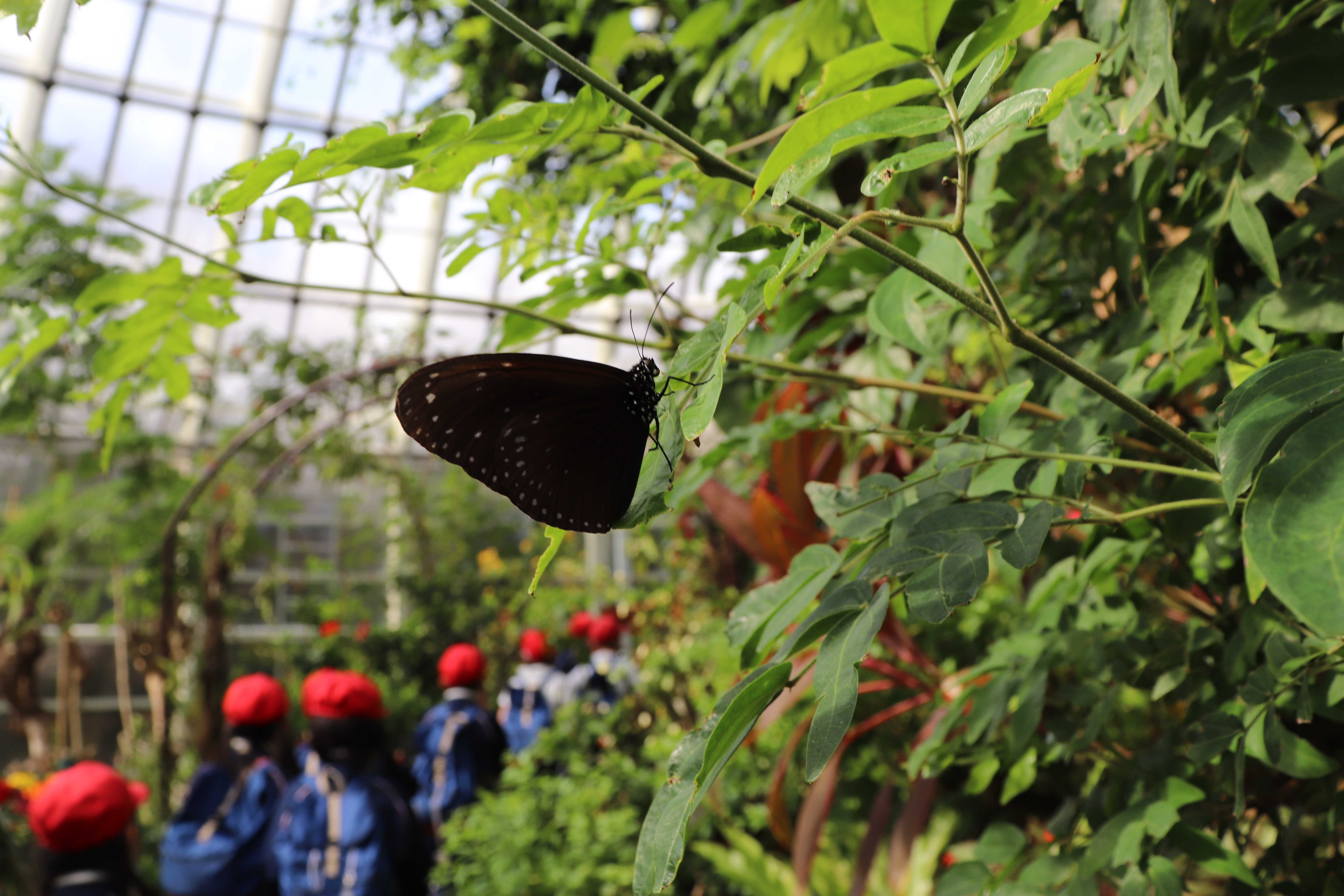チョウの温室ではさまざまなチョウが近くに寄って来たり、蜜を吸っている様子にビックリ!
