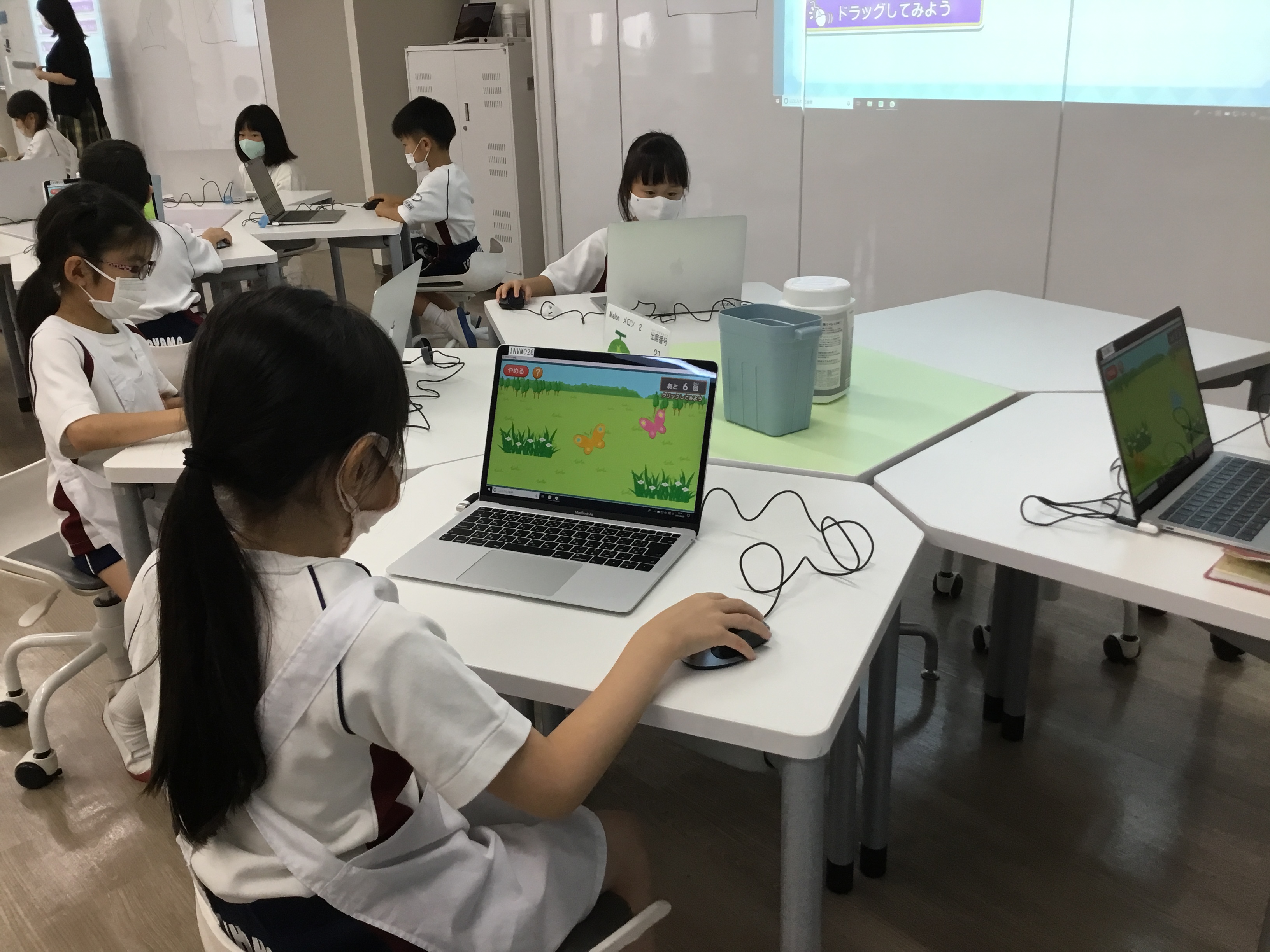5年生の体育で器械運動「マット運動」をしました。4人一組となり、お互いの技を見合い、教え合ったり、伝え合ったり、動画を撮影し合ったりする授業でした。例えば、水平バランスなども自分では、地面に水平に腕をあげているつもりでも実際にはそうでないことがよくあります。自分の中で、どの感覚で出力すればまっすぐなのかを確認し、一つひとつの感覚のズレを認知し、修正していきます。そうして、自分の体を思った通りに動かせるようになっていきます。また、他者にアドバイスすることは、自分が実際に技をするときにそのポイントを意識するようになるため、自分にもポイントをフィードバックしていくことになります。グループ内で活発にアドバイスし合い、協働的に授業が進んでいきました。