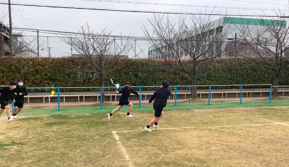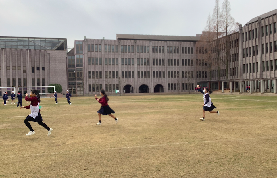 6年生理科で、折り紙で凧作りをしました。凧のあし(しっぽ)の本数や形を工夫して作ってくれていました。寒い日でしたが、作った凧をみんなで揚げてみました。さて、うまく揚がったのでしょうか。