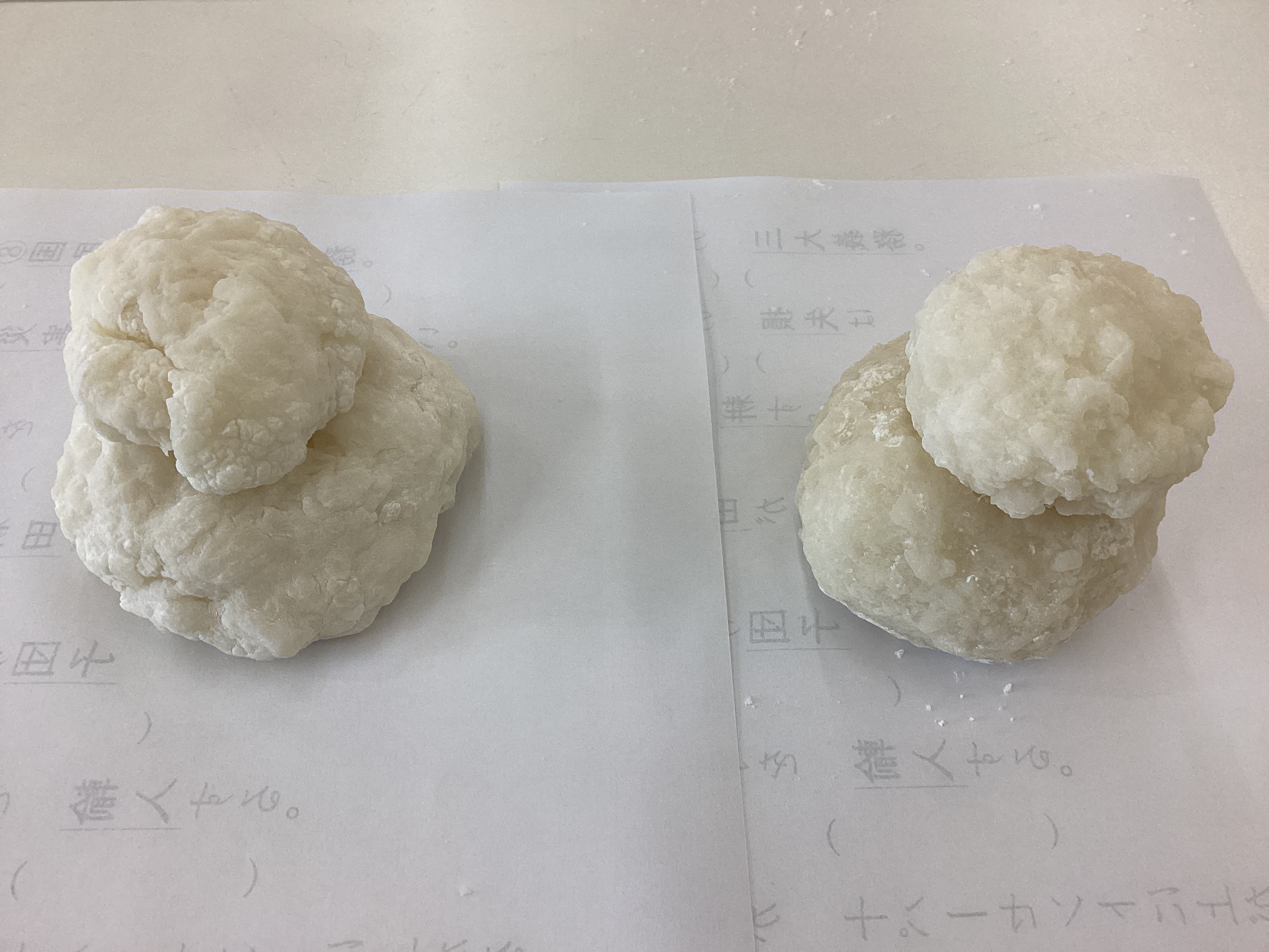 今年は6年生が、つきあがったおもちを鏡餅にしました。