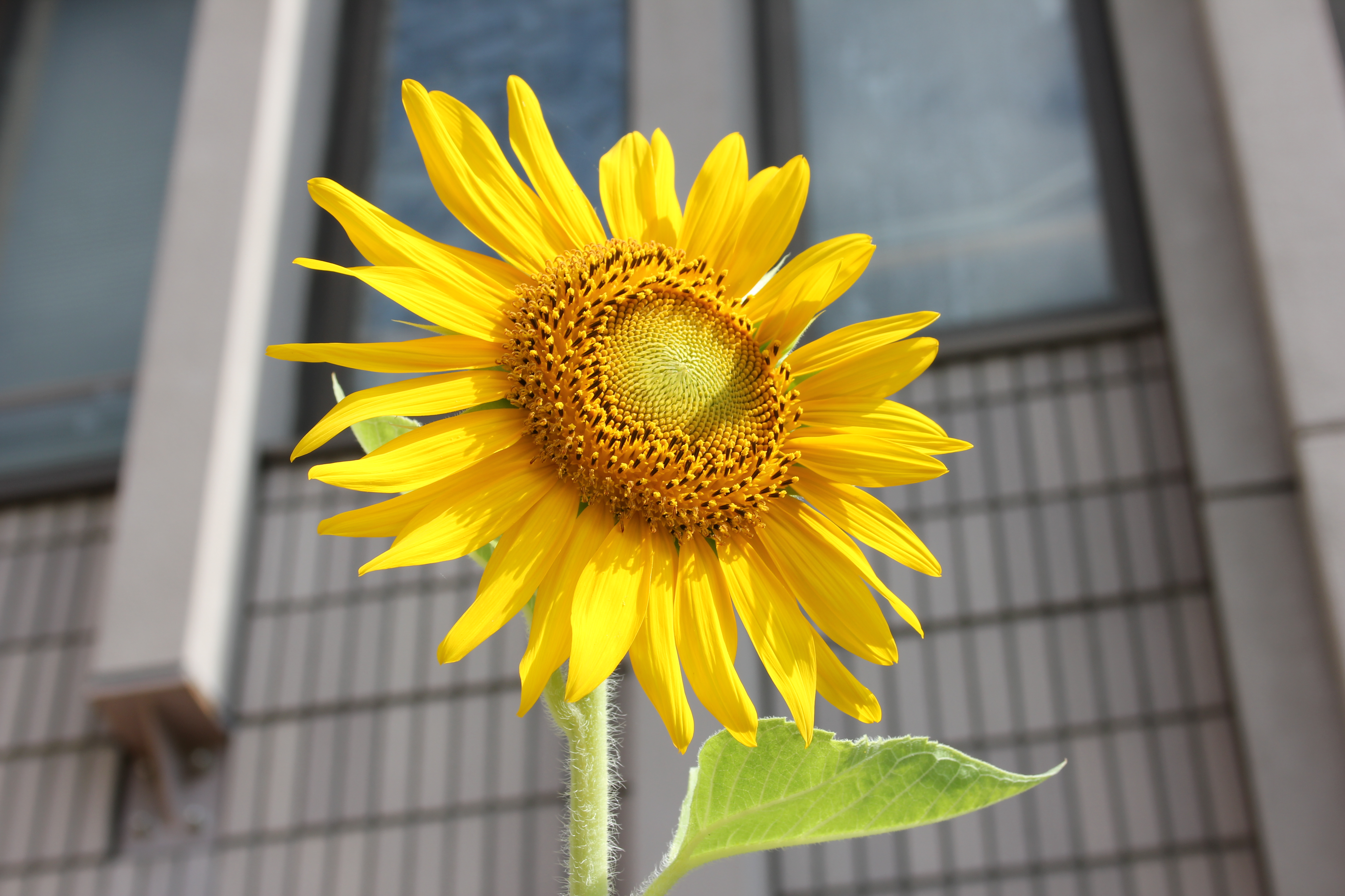 1年生が1学期に蒔いたひまわりのタネが、夏休み中にぐんぐん大きくなり、こんなに立派な花を咲かせています。