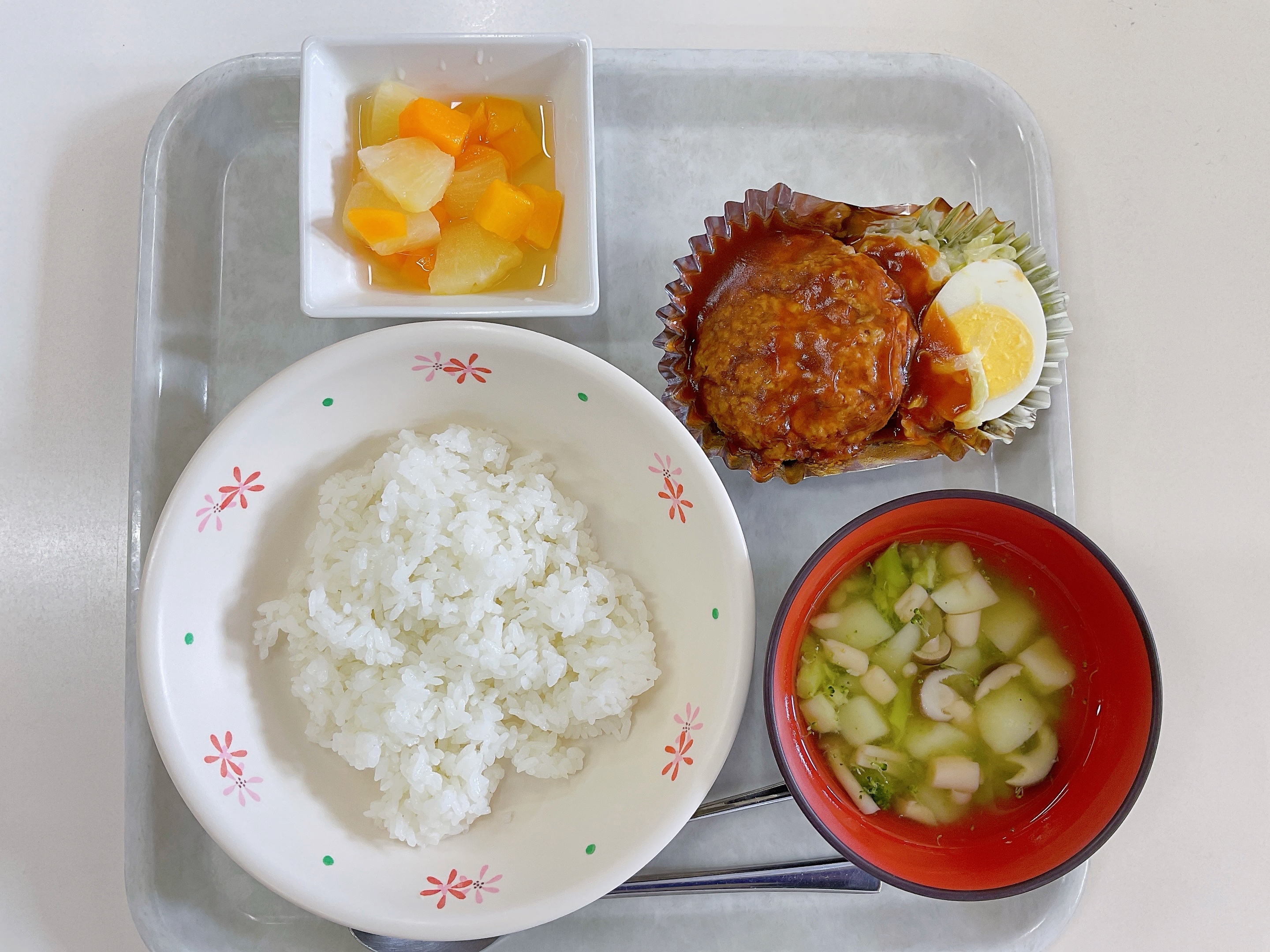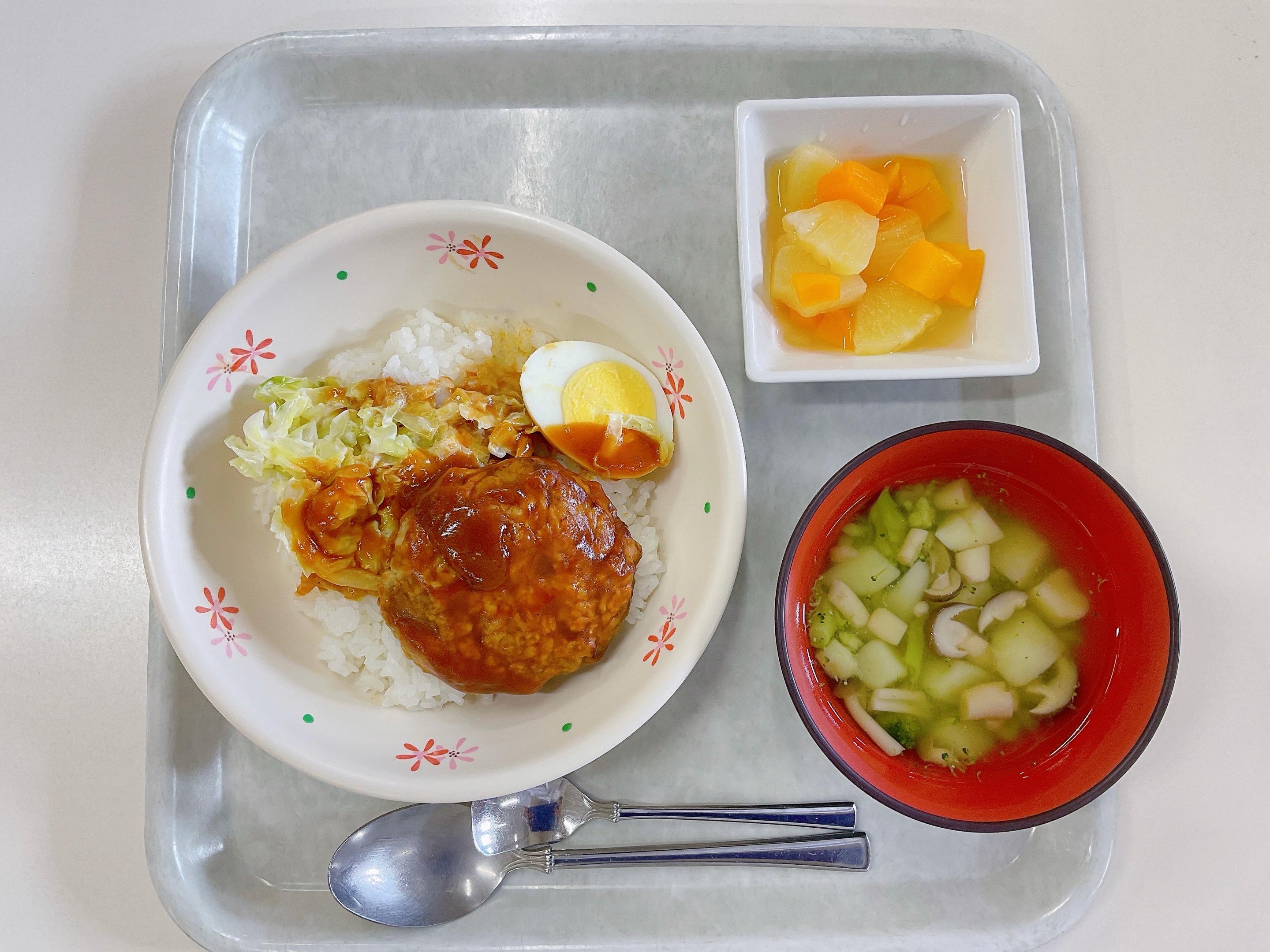 【今日の給食】韓国 ごはん、 ヤンニョムチキン、 豚肉とれんこんのきんぴら、 高野豆腐と ほうれん草のみそ汁
