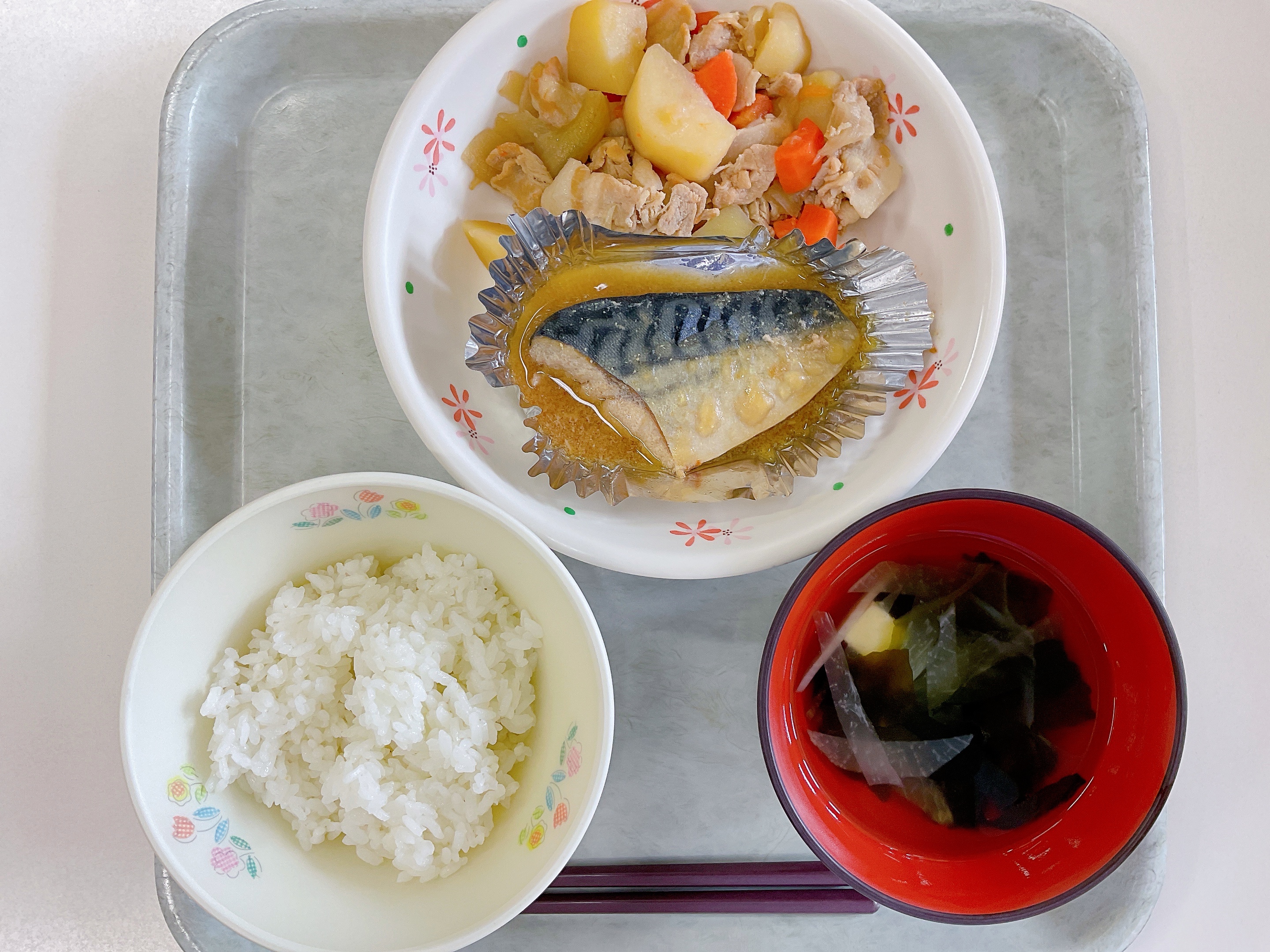 2025年12月17日(水) 和食 さばのみそ煮 【今日の給食】 ごはん さばのみそ煮 豚肉じゃが 豆腐とわかめのすまし汁 さばは、レシピが豊富な魚です。 普段は、塩焼きや煮付けで食べることが多いさばを今日はみそ煮にしてみました。 生姜が香るみそベースのご飯がすすむおかずです。