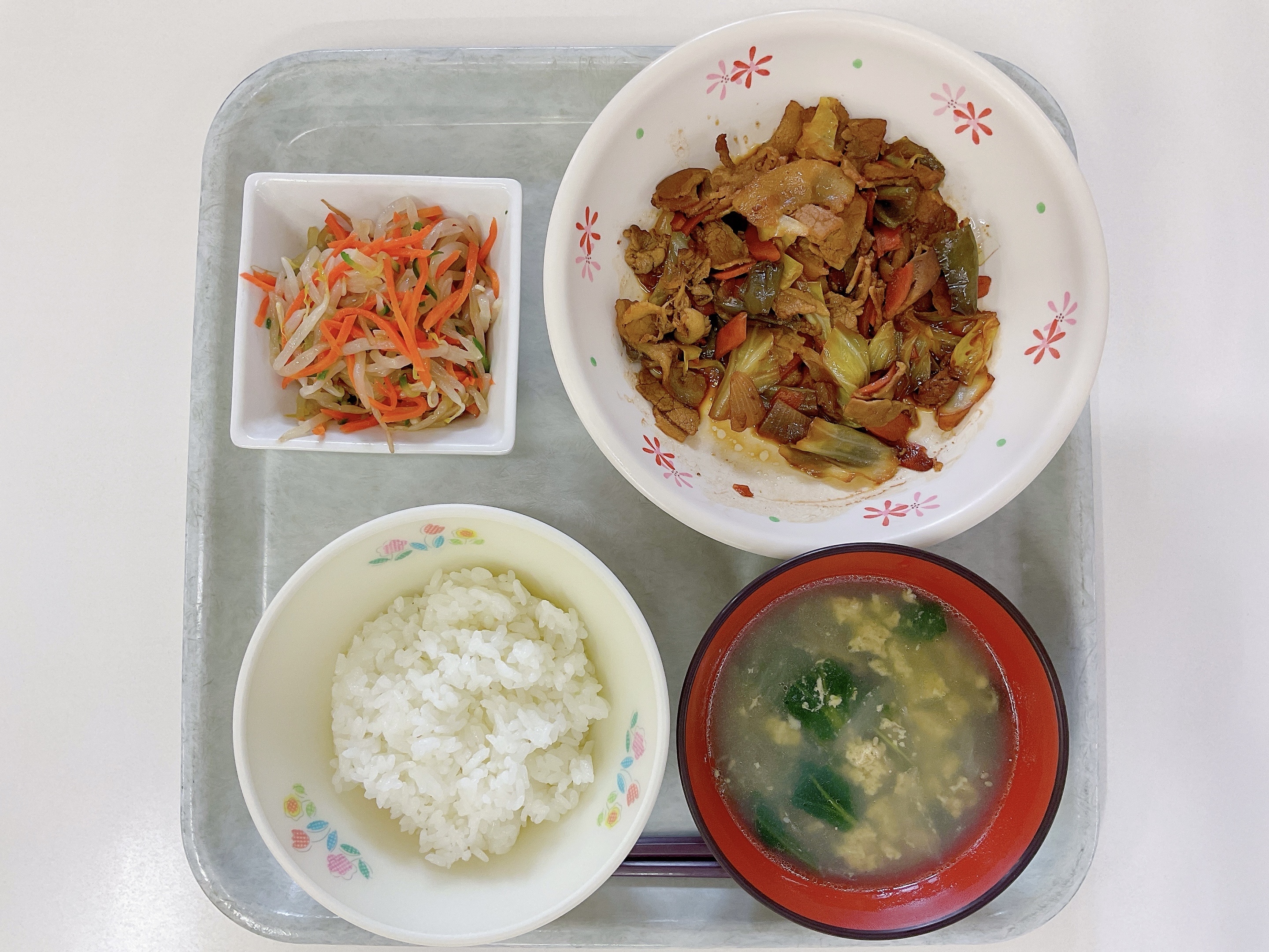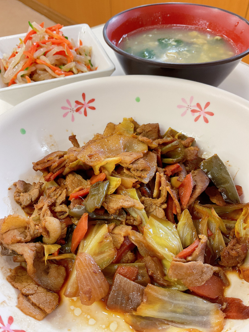 2026年02月09日(月) 中華 豚バラのホイコーロー 【今日の給食】 ごはん 豚バラのホイコーロー もやしの中華和え チンゲン菜と椎茸の中華卵スープ ホイコーローは、にんじん、ピーマン、玉ねぎという野菜が苦手な人にとっては苦戦メニューかもしれません。 でも豚バラと濃いめのみそ”八丁味噌”のうま味がからまることで、野菜の香りが気になりません。 たれでご飯が食べたくなること間違いなし。