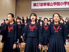 学校長から、卒業生一人ひとりに卒業証書が手渡されます。たくさんの思い出を胸に、帝塚山学院小学校を巣立ちます。